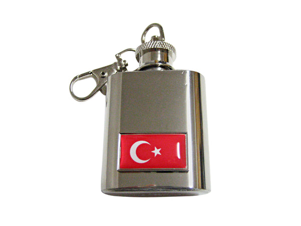 Thin Bordered Turkey Flag Pendant 1 Oz. Stainless Steel Key Chain Flask
