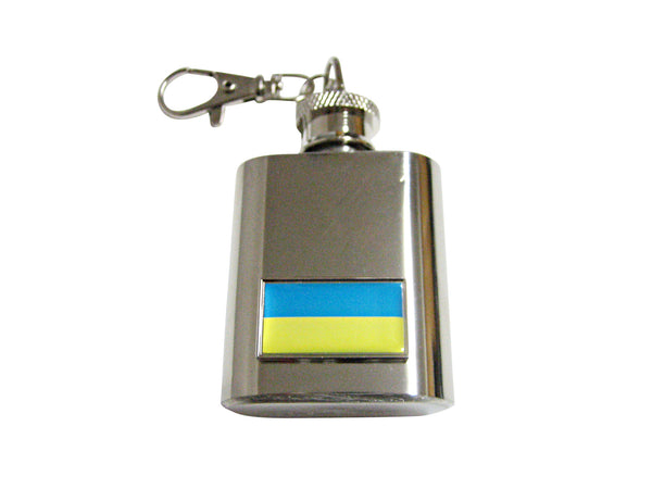 Thin Bordered Ukraine Flag Pendant 1 Oz. Stainless Steel Key Chain Flask