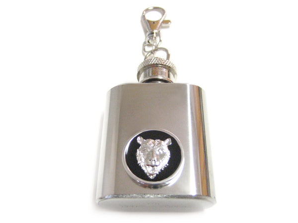 1 Oz. Stainless Steel Key Chain Flask with Bear Pendant