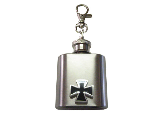 1 Oz. Stainless Steel Key Chain Flask with Black Cross Pendant