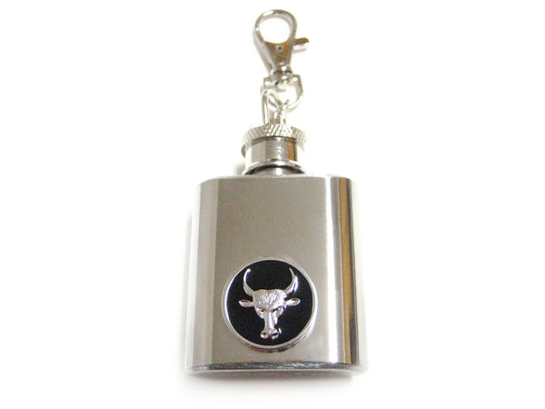 1 Oz. Stainless Steel Key Chain Flask with Bull Pendant