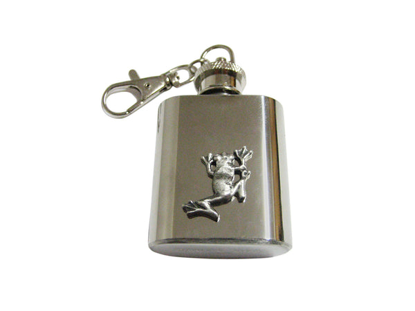 Silver Toned Etched Frog 1 Oz. Stainless Steel Key Chain Flask