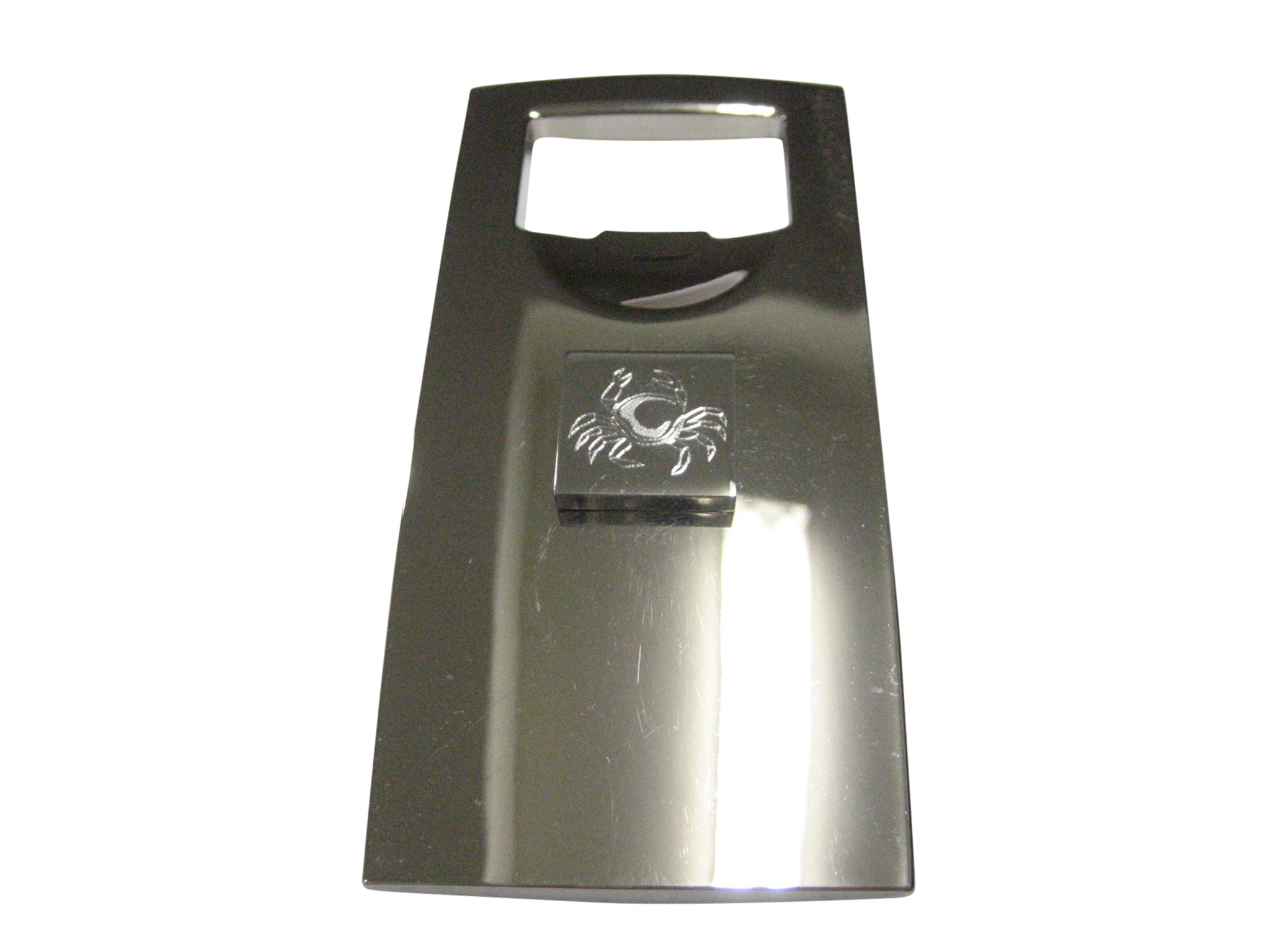 The bottle opener is pretty thick and heavy. It is 3 7/8 inch long by 1 3/4 inch wide