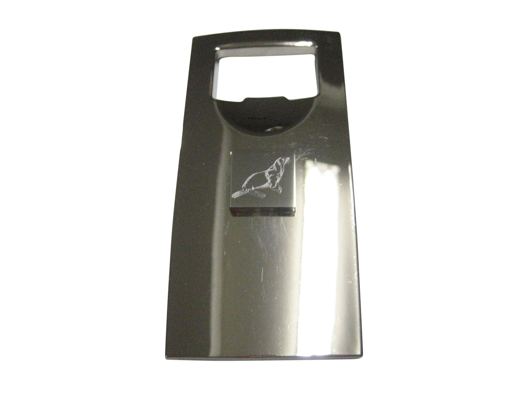 Silver Toned Square Etched Sea Lion Bottle Opener