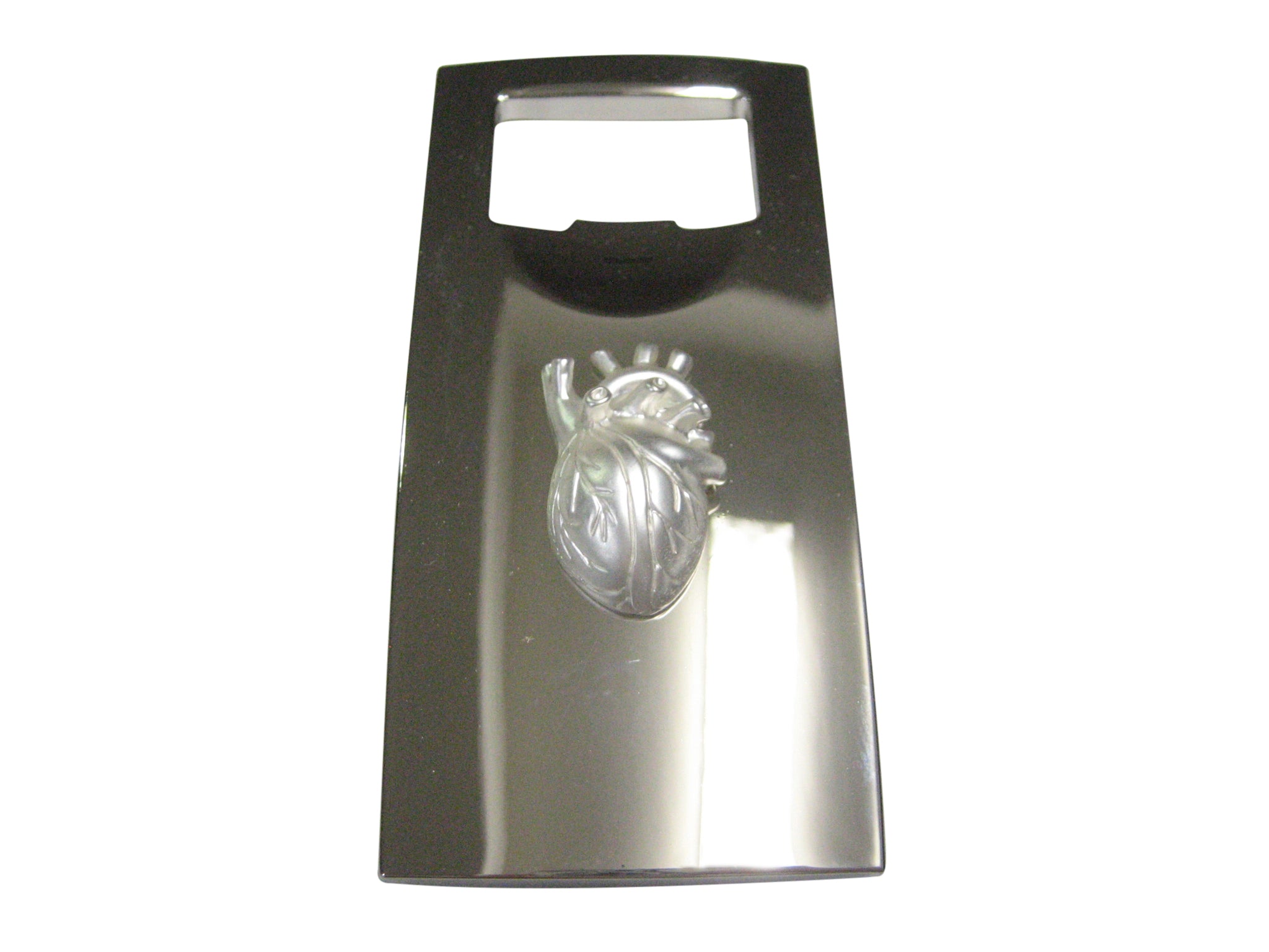 The bottle opener is pretty thick and heavy. It is 3 7/8 inch long by 1 3/4 inch wide