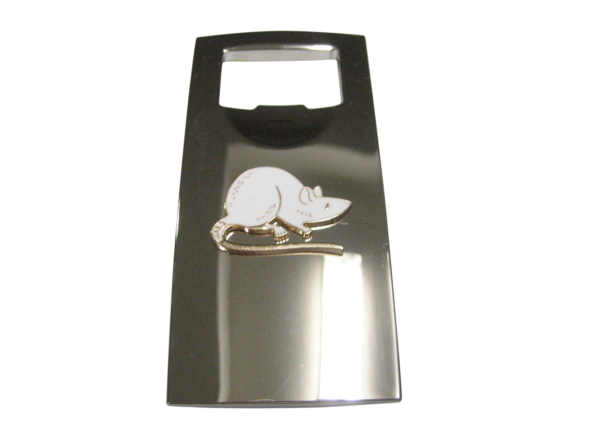 The bottle opener is pretty thick and heavy. It is 3 7/8 inch long by 1 3/4 inch wide