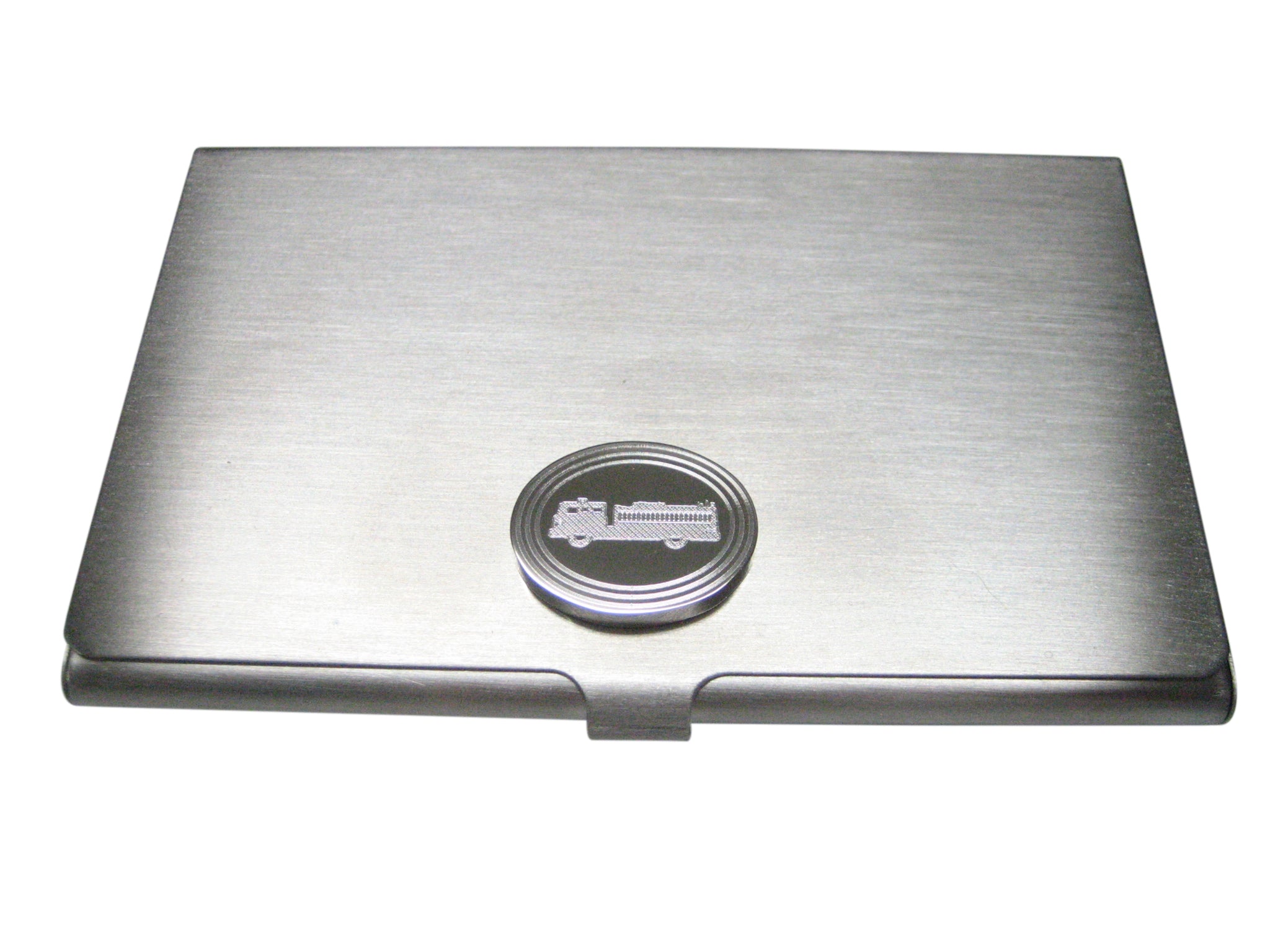 Silver Toned Etched Oval Fire Truck Business Card Holder