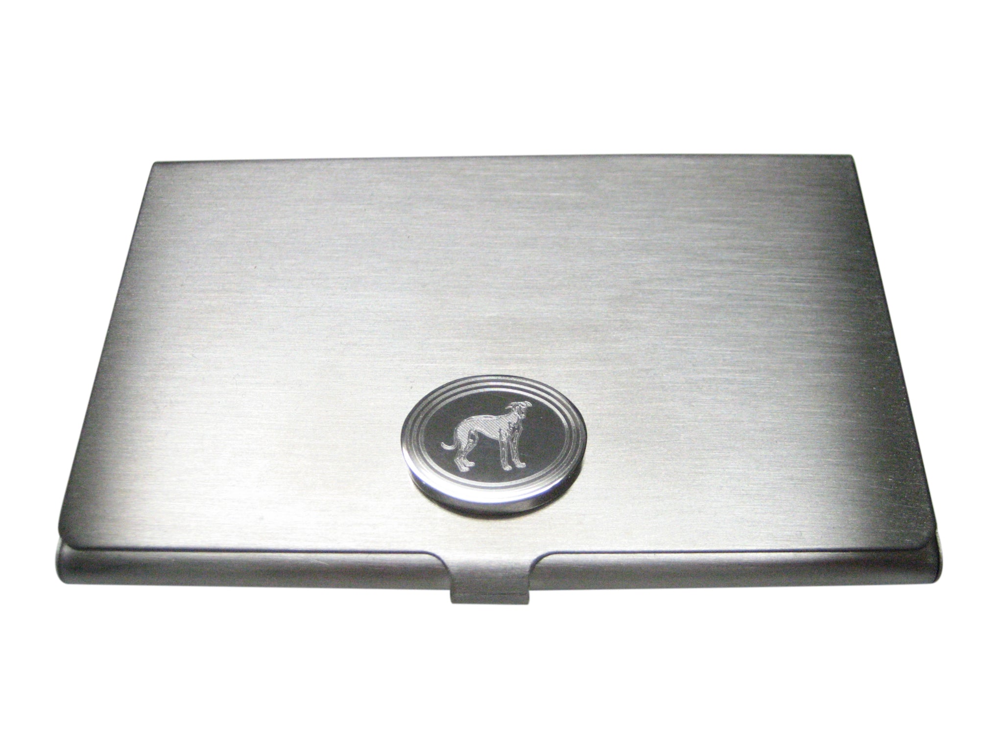 Silver Toned Etched Oval Hound Dog Business Card Holder