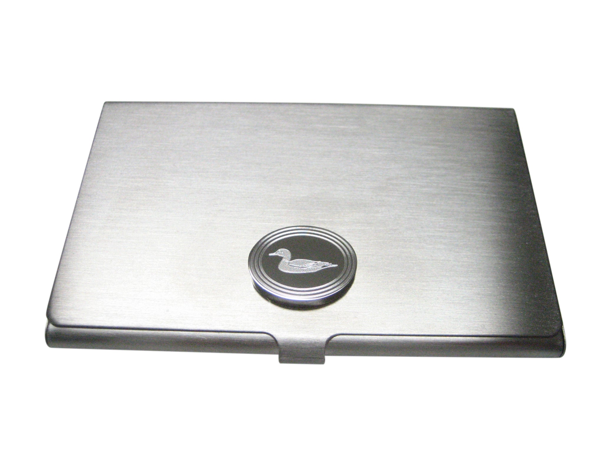 Silver Toned Etched Oval Mallard Duck Business Card Holder