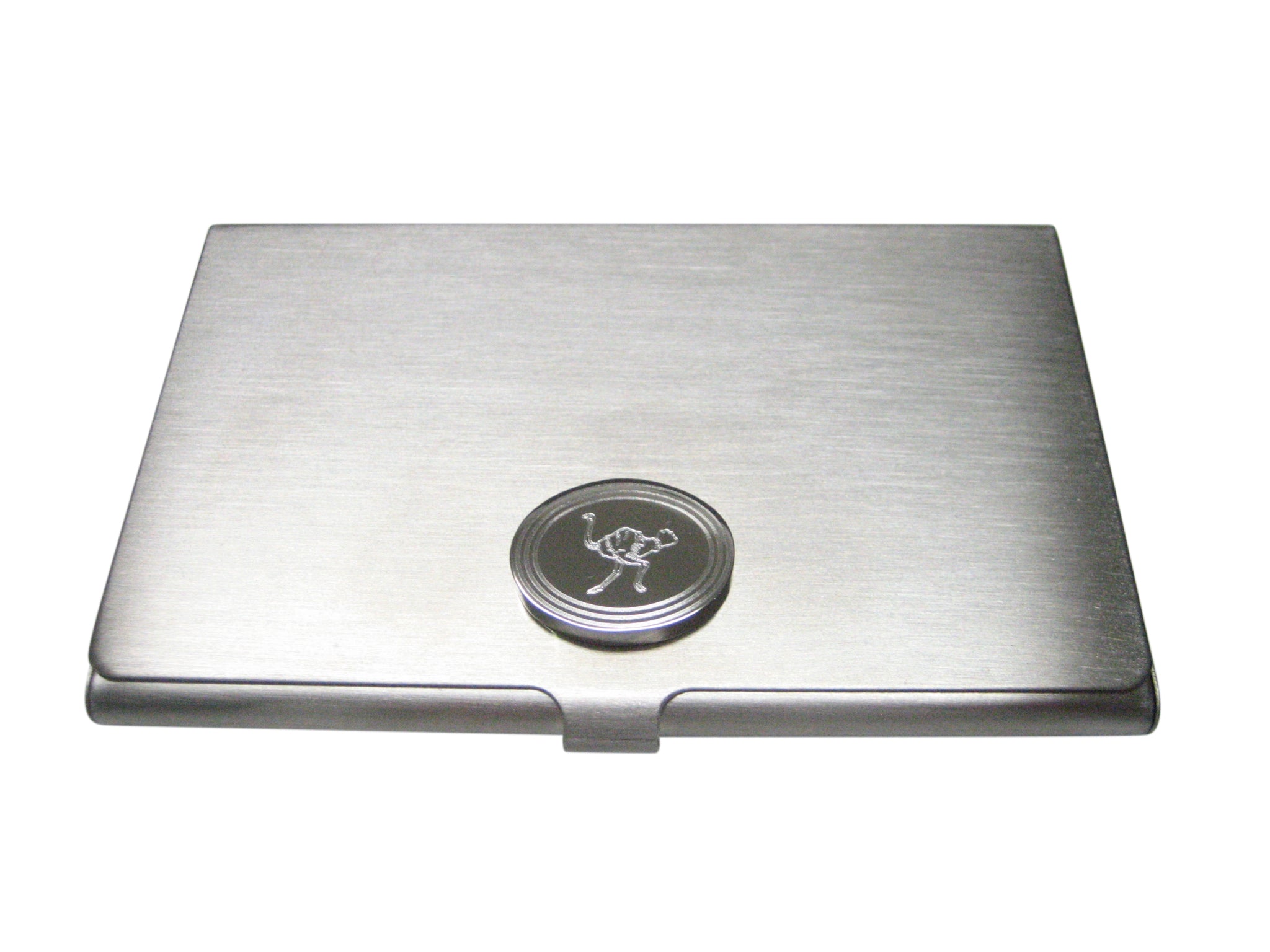 Silver Toned Etched Oval Ostrich Bird Business Card Holder