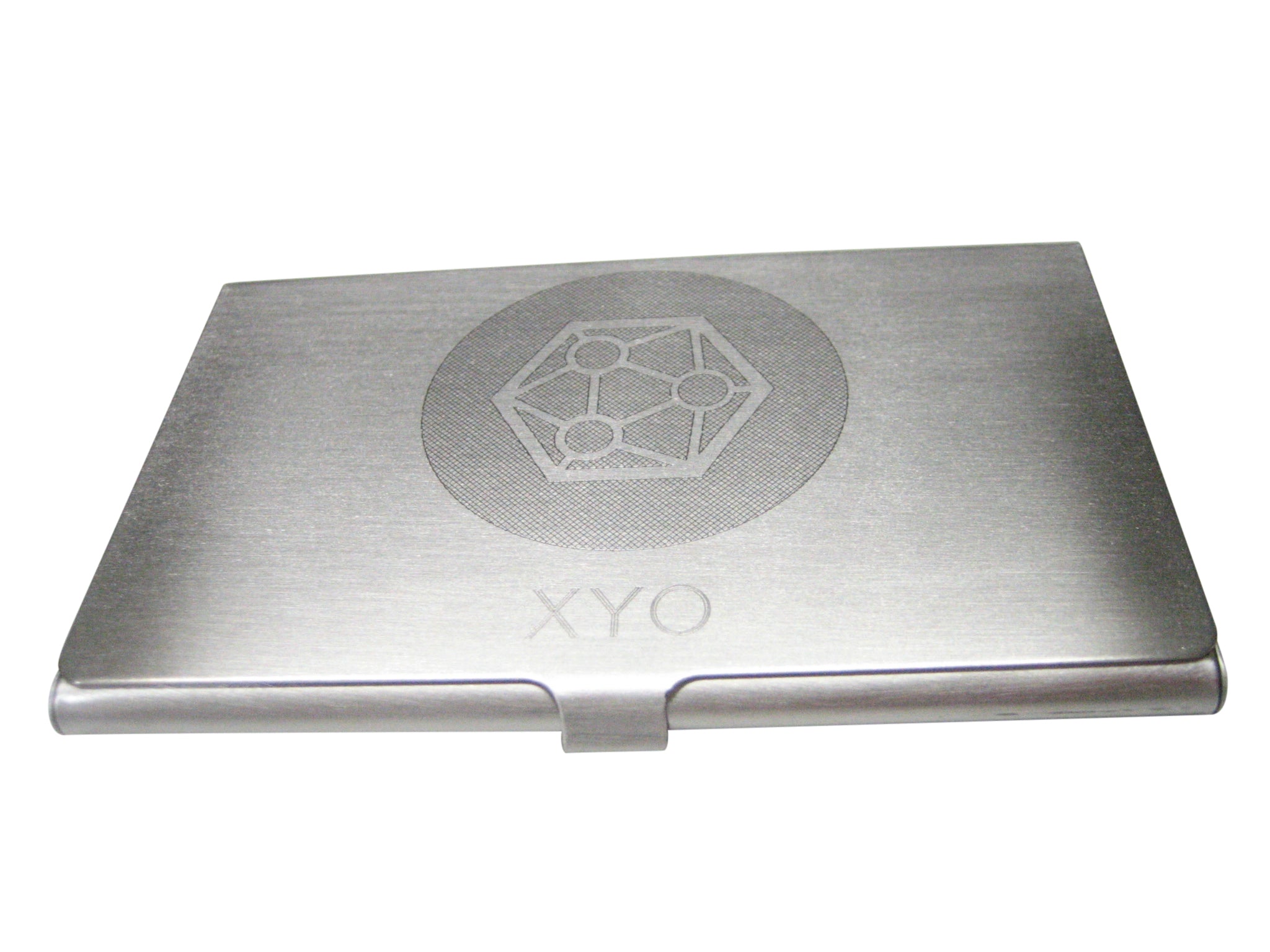 Silver Toned Large Etched Sleek XYO Coin Cryptocurrency Blockchain Business Card Holder