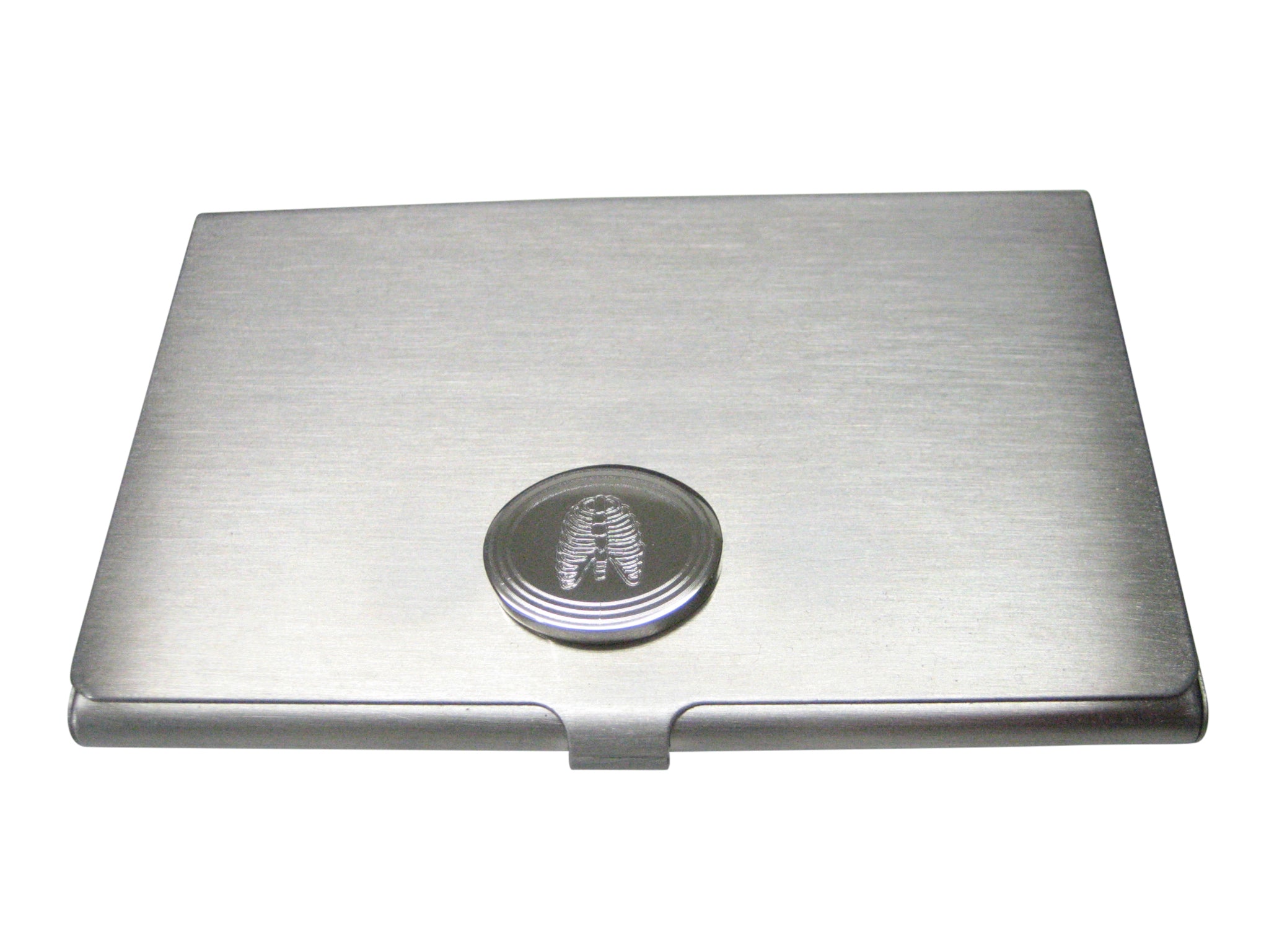 Silver Toned Oval Etched Anatomical Rib Cage Business Card Holder