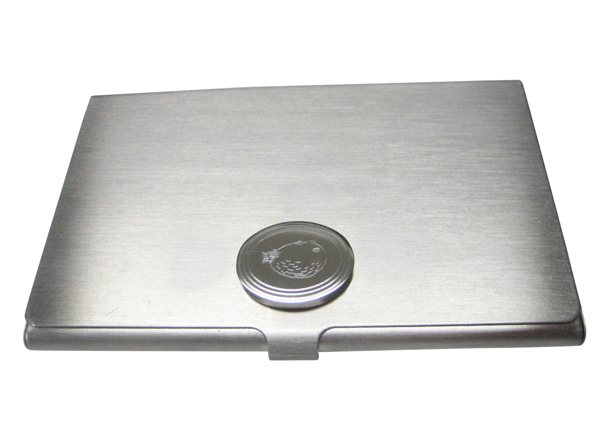 Silver Toned Oval Etched Blowfish Fugu Puffer Fish Business Card Holder