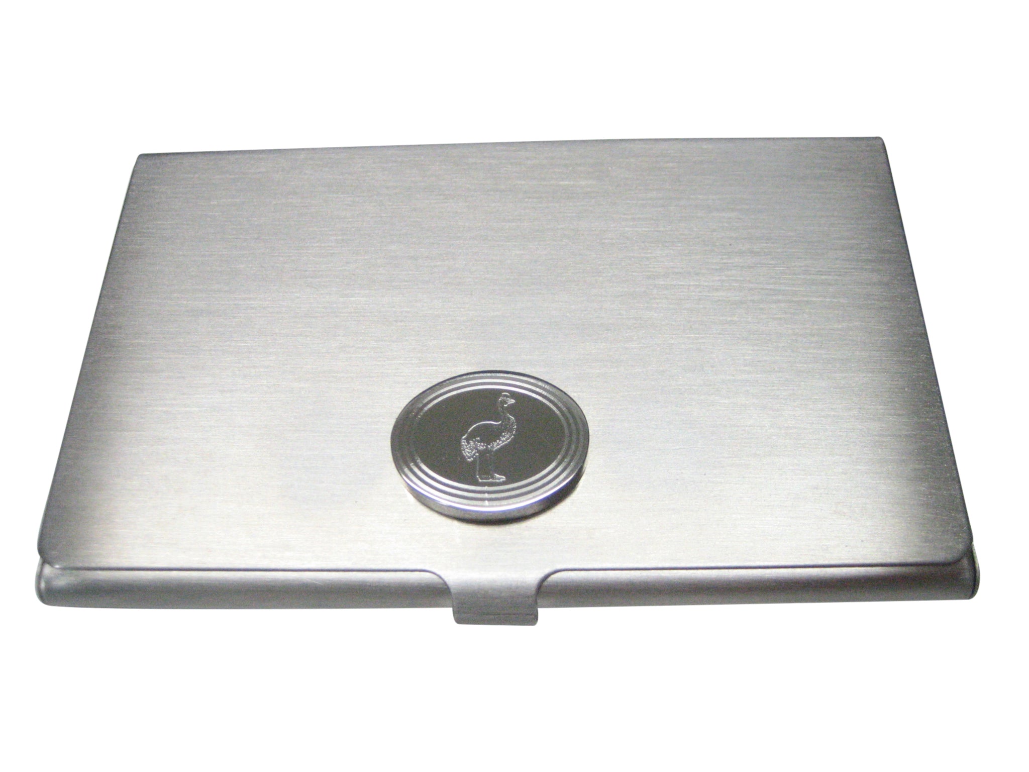 Silver Toned Oval Etched Cassowary Bird Business Card Holder