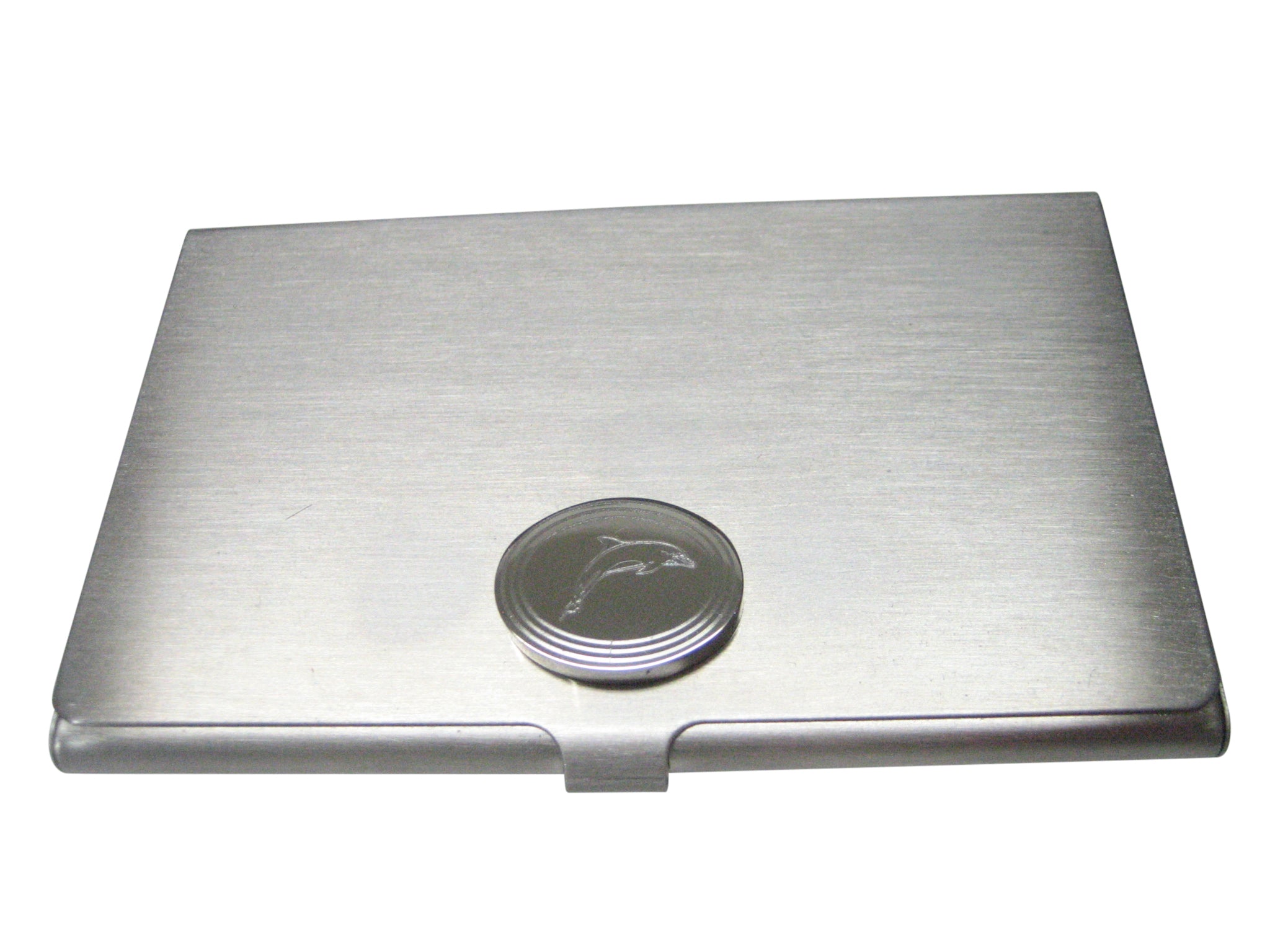 Silver Toned Oval Etched Dolphin Business Card Holder