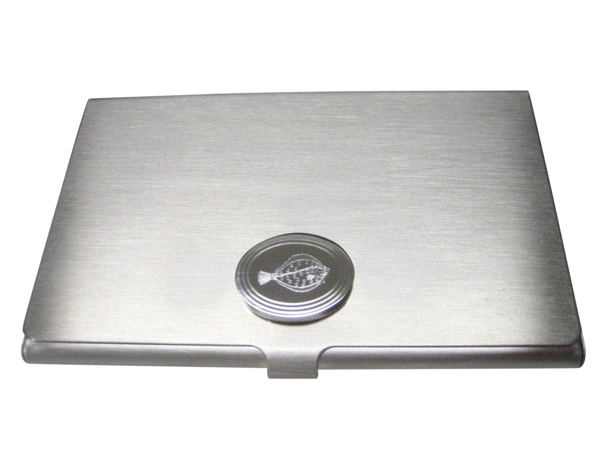 Silver Toned Oval Etched Flounder Halibut Flatfish Business Card Holder