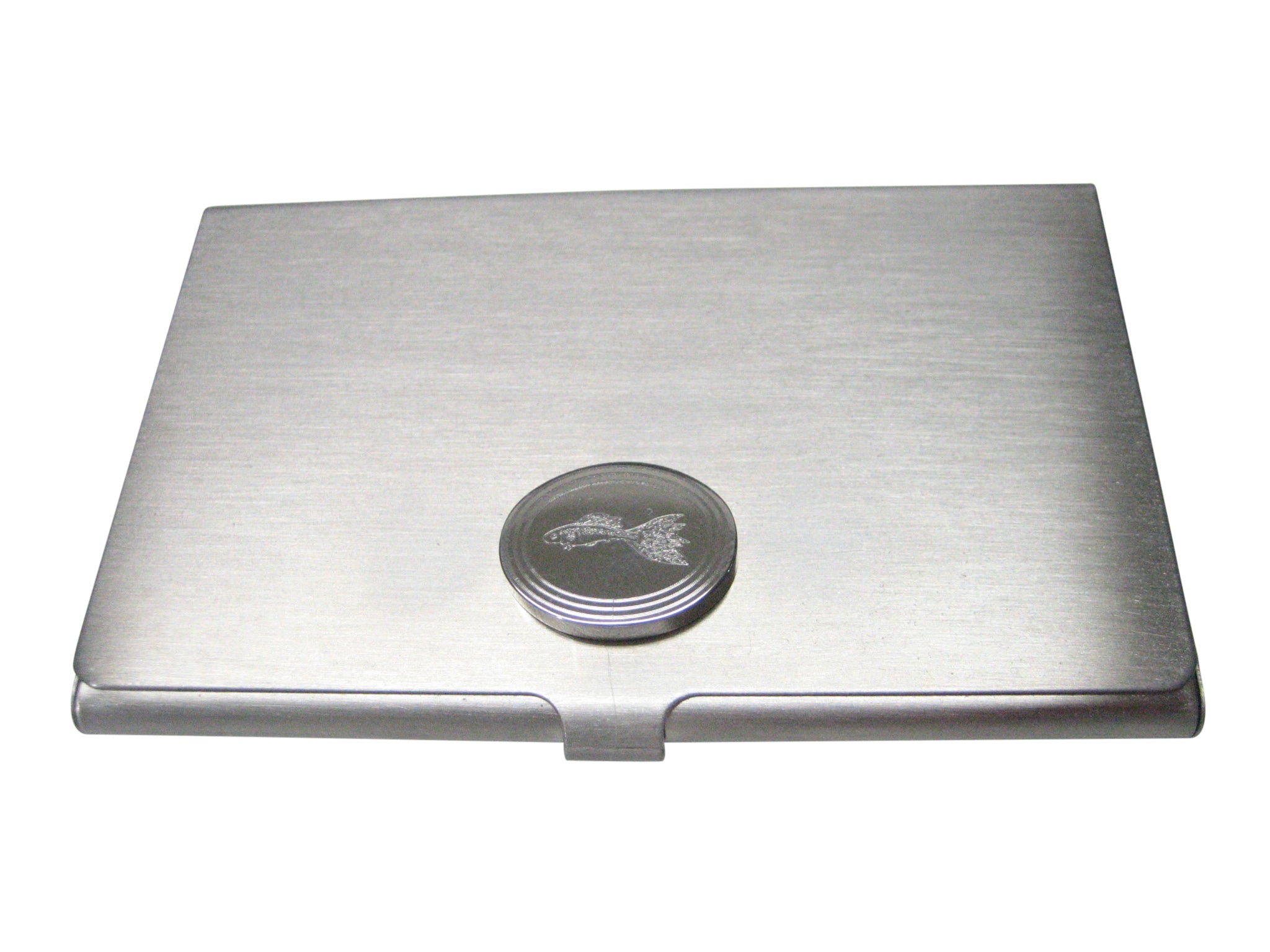 Silver Toned Oval Etched Guppy Fish Business Card Holder