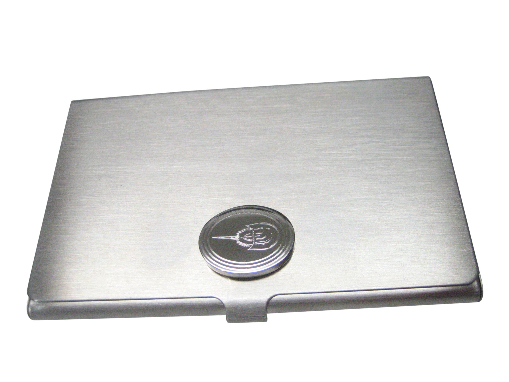 Silver Toned Oval Etched Horseshoe Crab Business Card Holder
