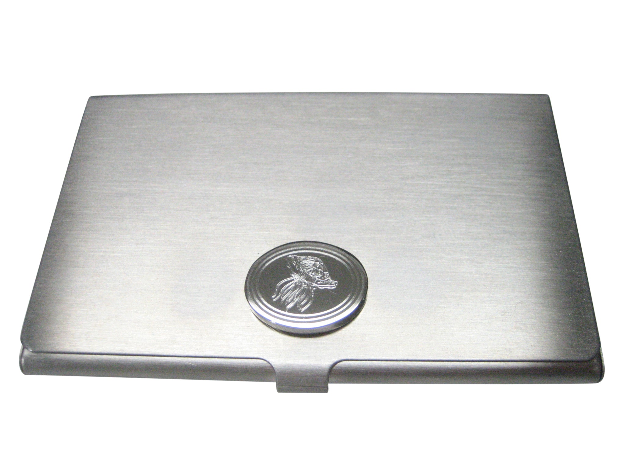 Silver Toned Oval Etched Jellyfish Business Card Holder