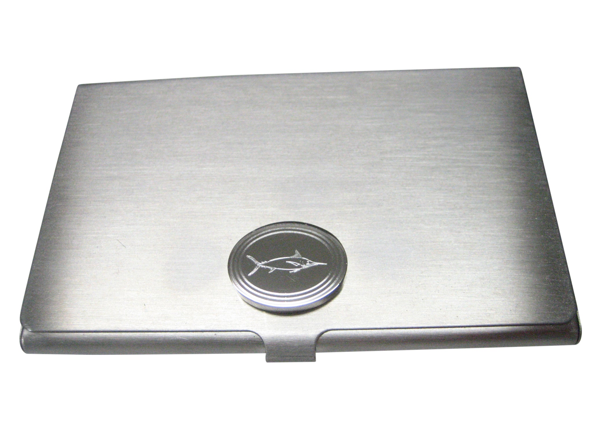 Silver Toned Oval Etched Marlin Sailfish Business Card Holder