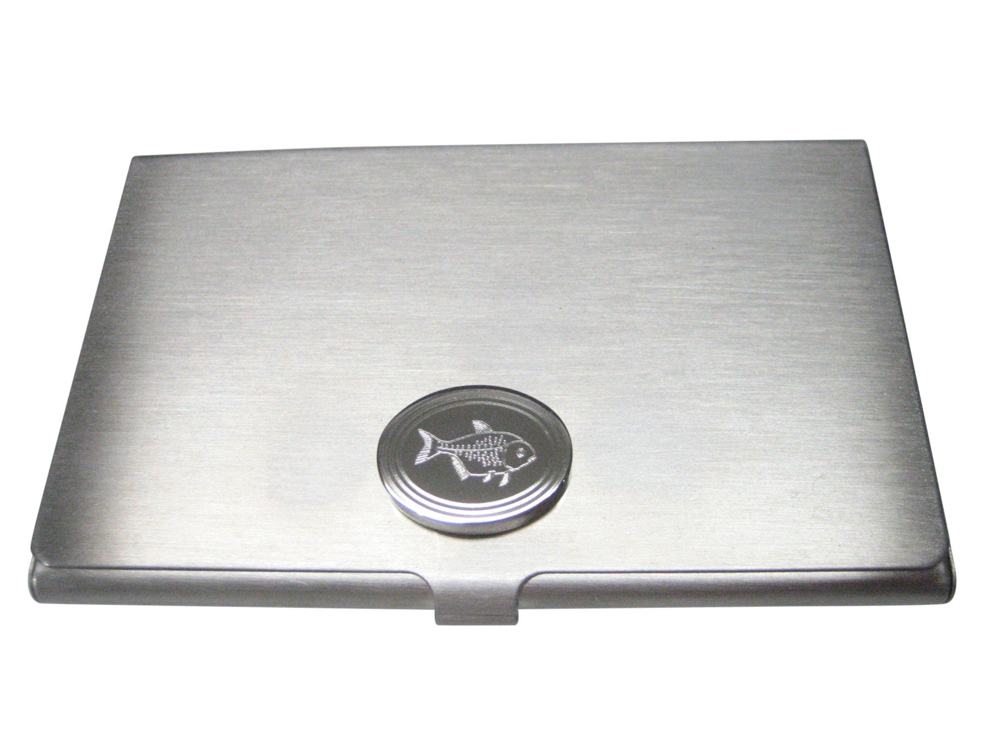 Silver Toned Oval Etched Piranha Pirana Fish Business Card Holder
