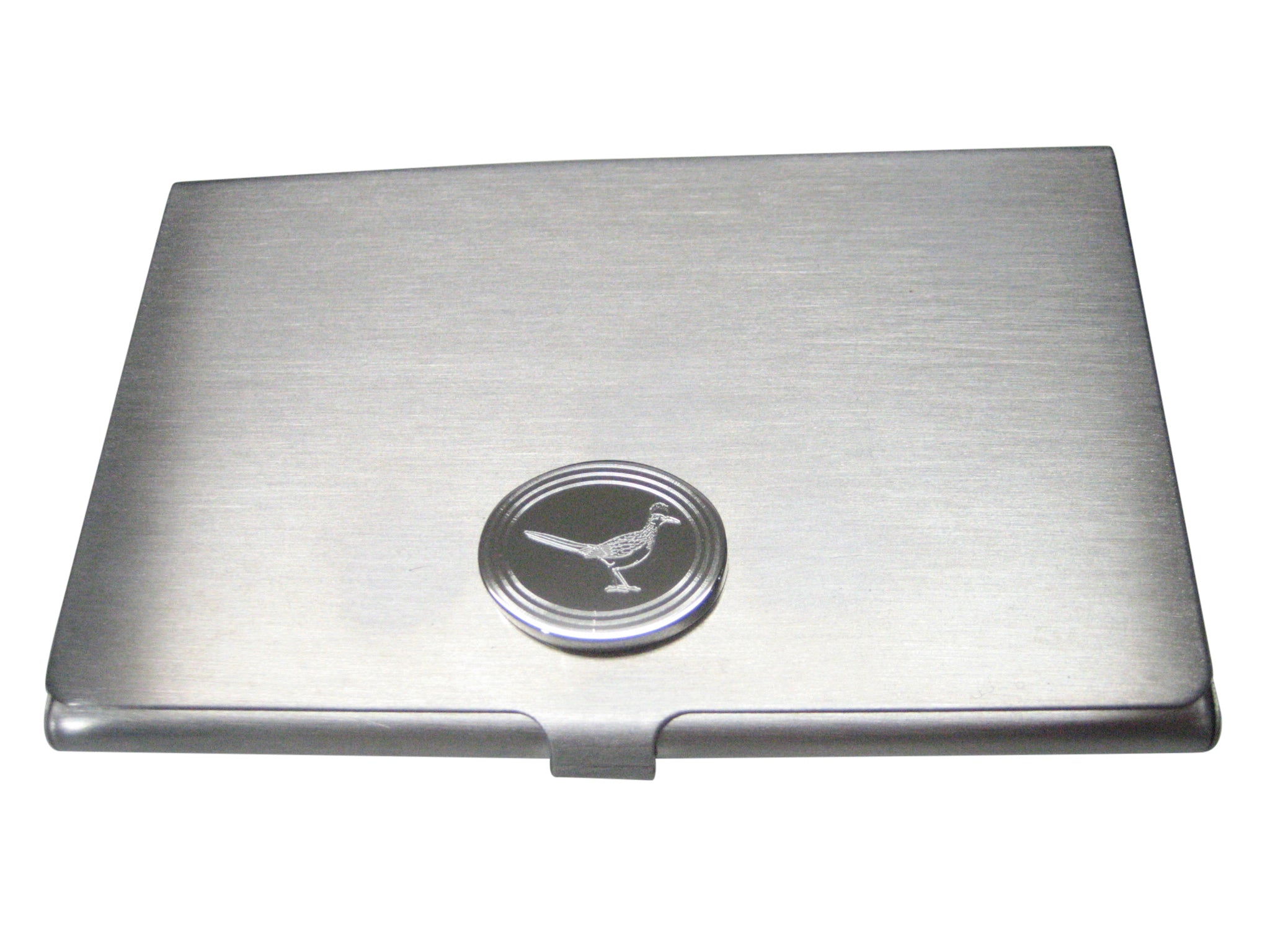 Silver Toned Oval Etched Roadrunner Bird Business Card Holder