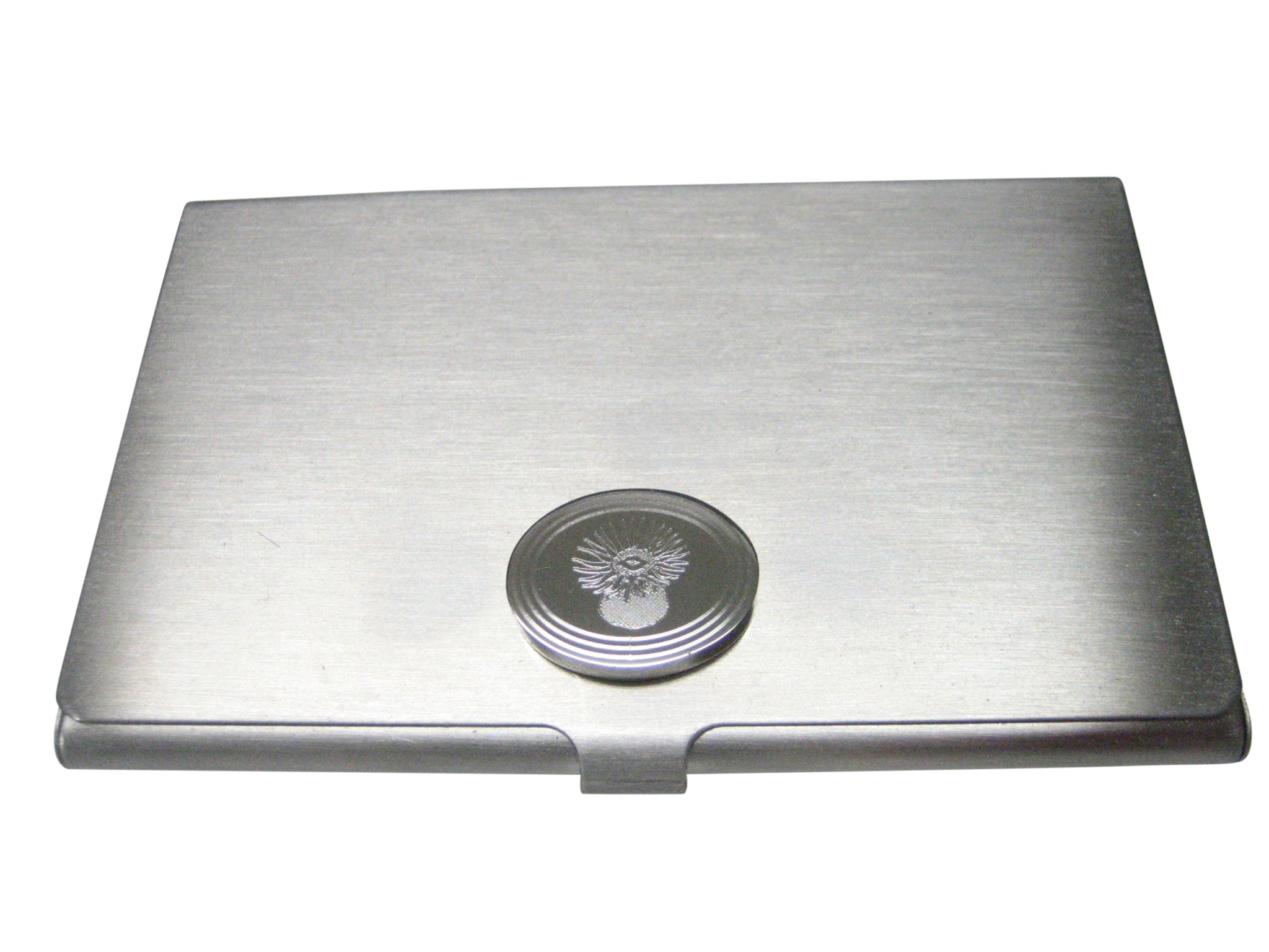 Silver Toned Oval Etched Sea Anemone Business Card Holder
