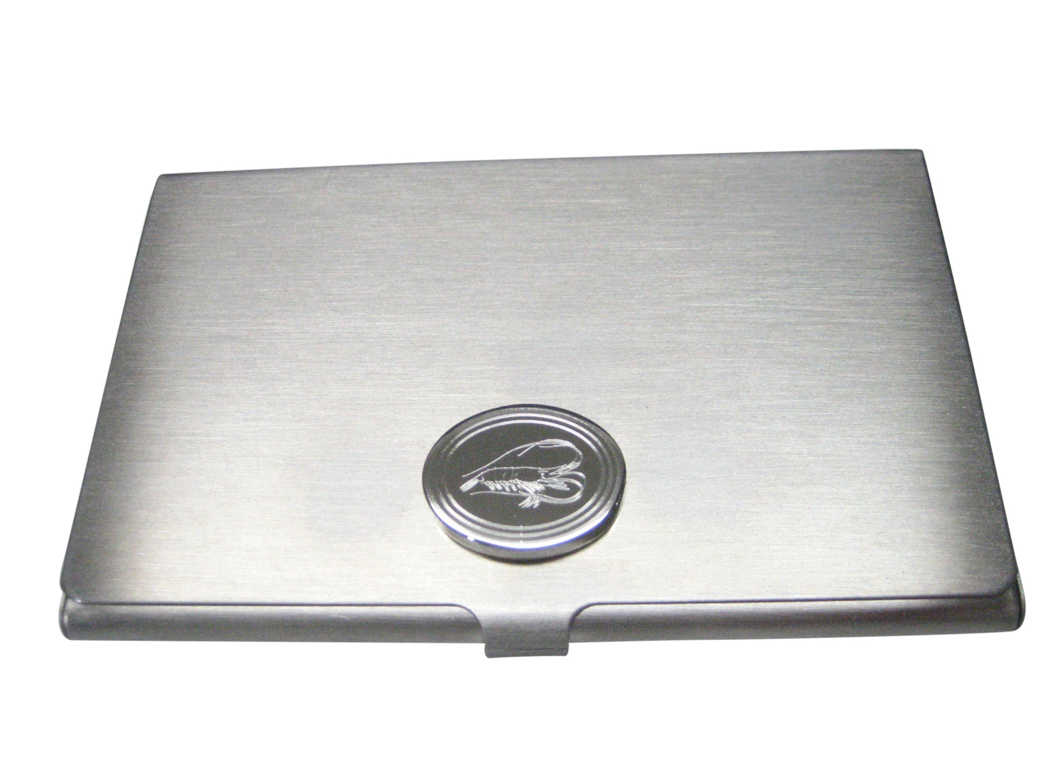 Silver Toned Oval Etched Shrimp Business Card Holder