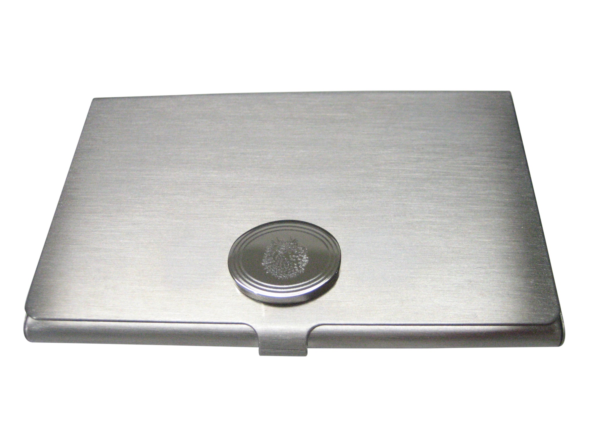 Silver Toned Oval Etched Spikey Puffer Fish Fugu Blowfish Business Card Holder