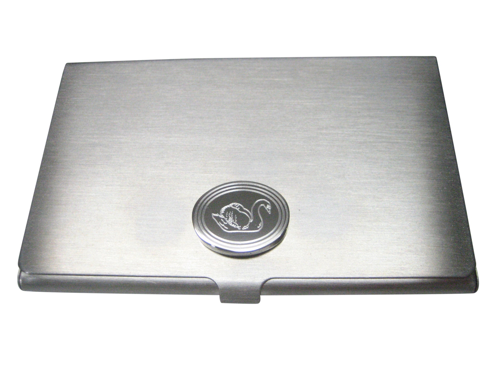 Silver Toned Oval Etched Swan Bird Business Card Holder