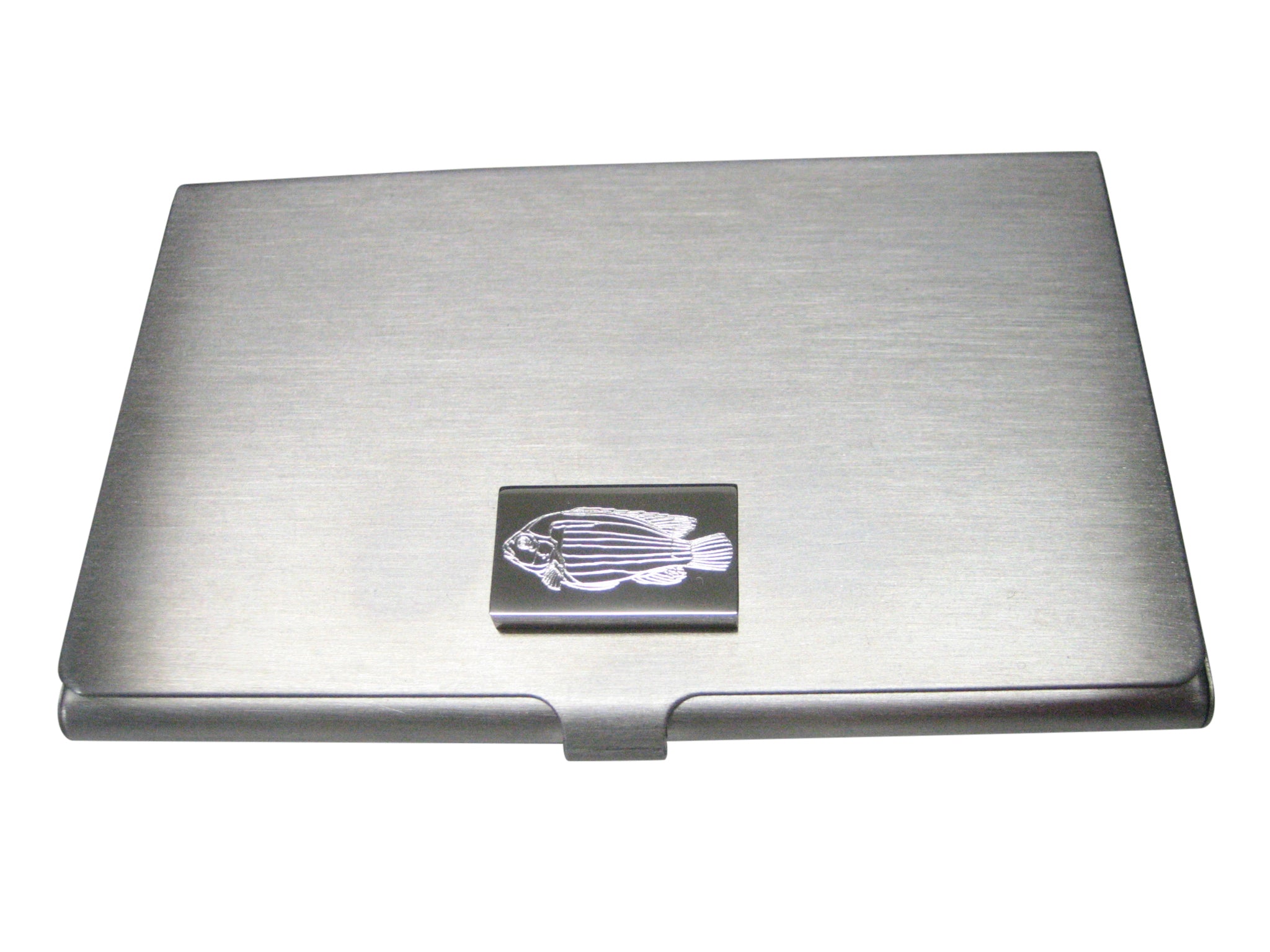 Silver Toned Rectangular Etched African Cichlid Fish Business Card Holder