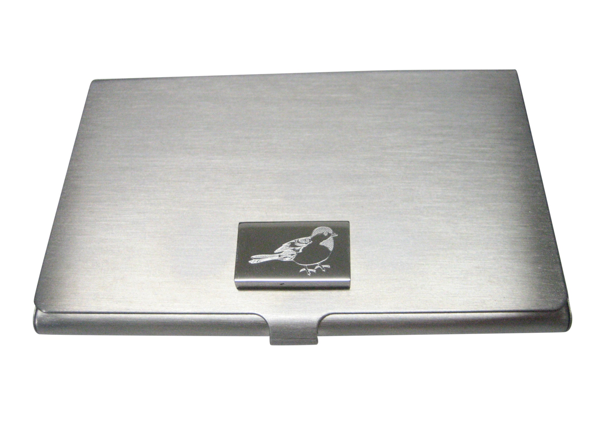 Silver Toned Rectangular Etched Chickadee Bird Business Card Holder