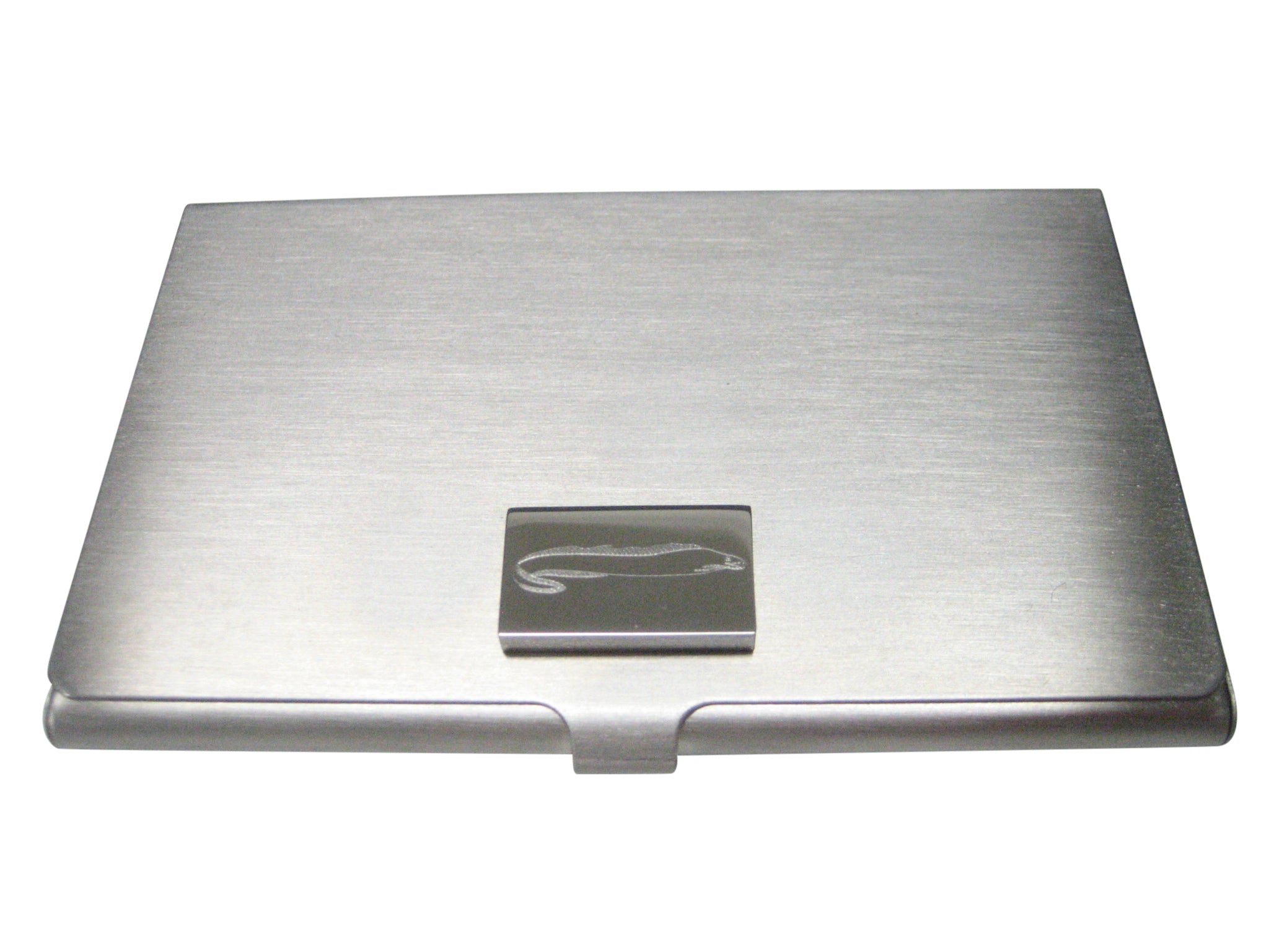 Silver Toned Rectangular Etched Moray Eel Fish Business Card Holder