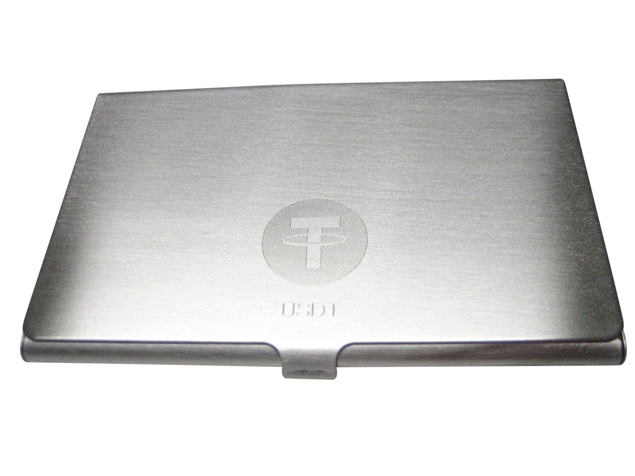 Silver Toned Small Etched Sleek Tether Coin Cryptocurrency Blockchain Business Card Holder