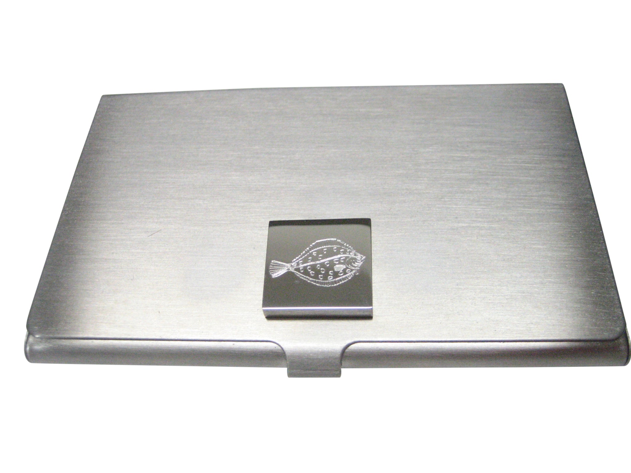 Silver Toned Square Etched Flounder Halibut Flatfish Business Card Holder