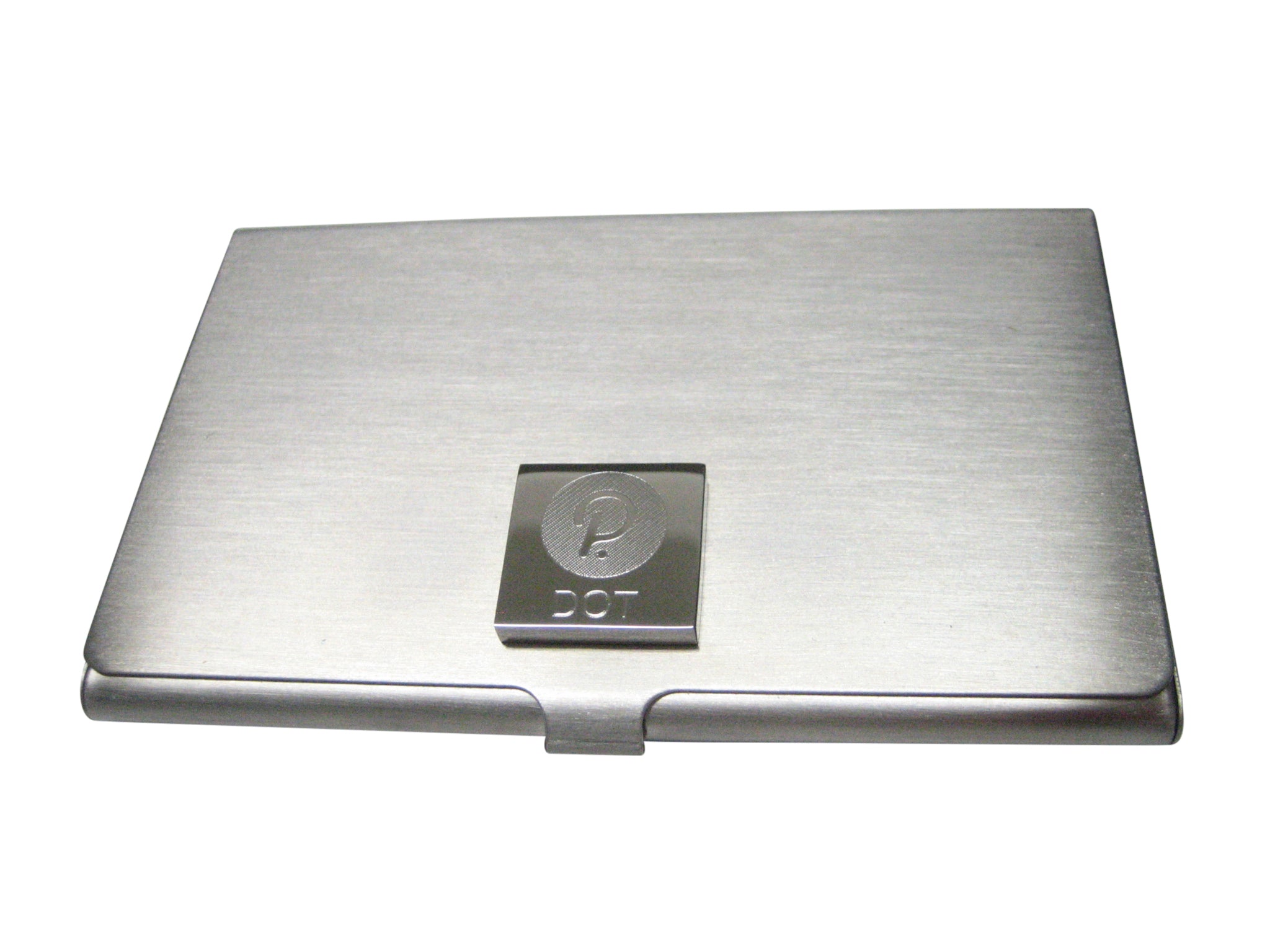 Silver Toned Square Pendant Etched Polkadot Coin Cryptocurrency Blockchain Business Card Holder