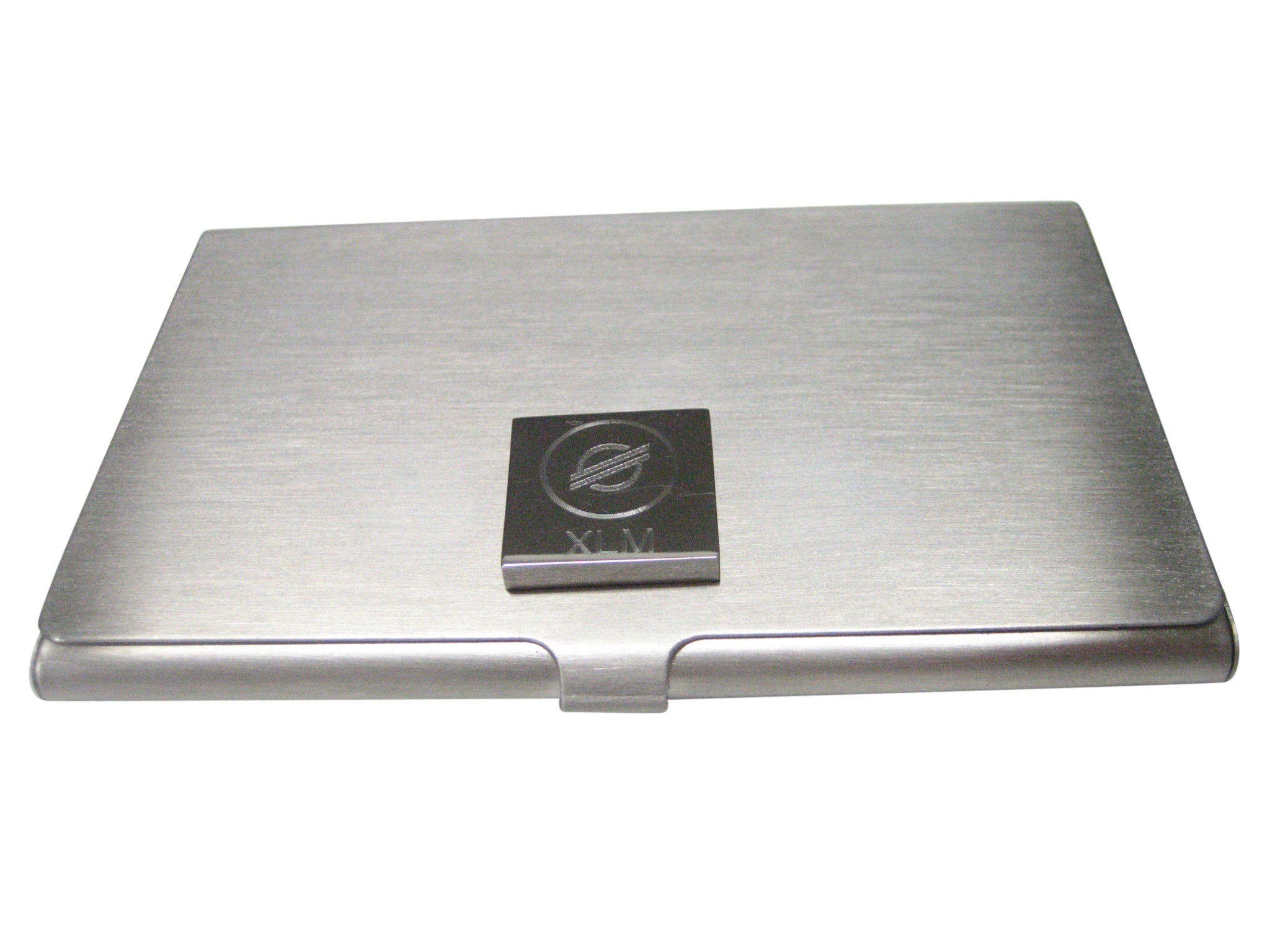 Silver Toned Square Pendant Etched Stellar Lumens Coin XLM Cryptocurrency Blockchain Business Card Holder