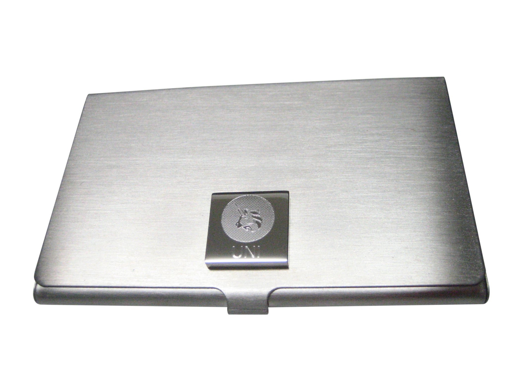 Silver Toned Square Pendant Etched Uniswap Coin Cryptocurrency Blockchain Business Card Holder