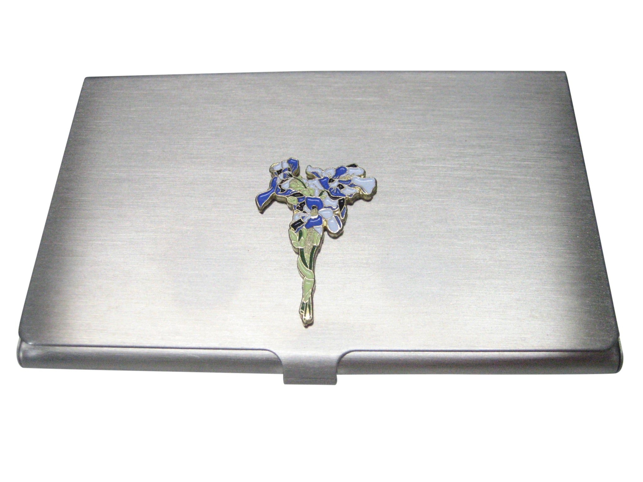 Violet and White Toned Iris Flower Business Card Holder