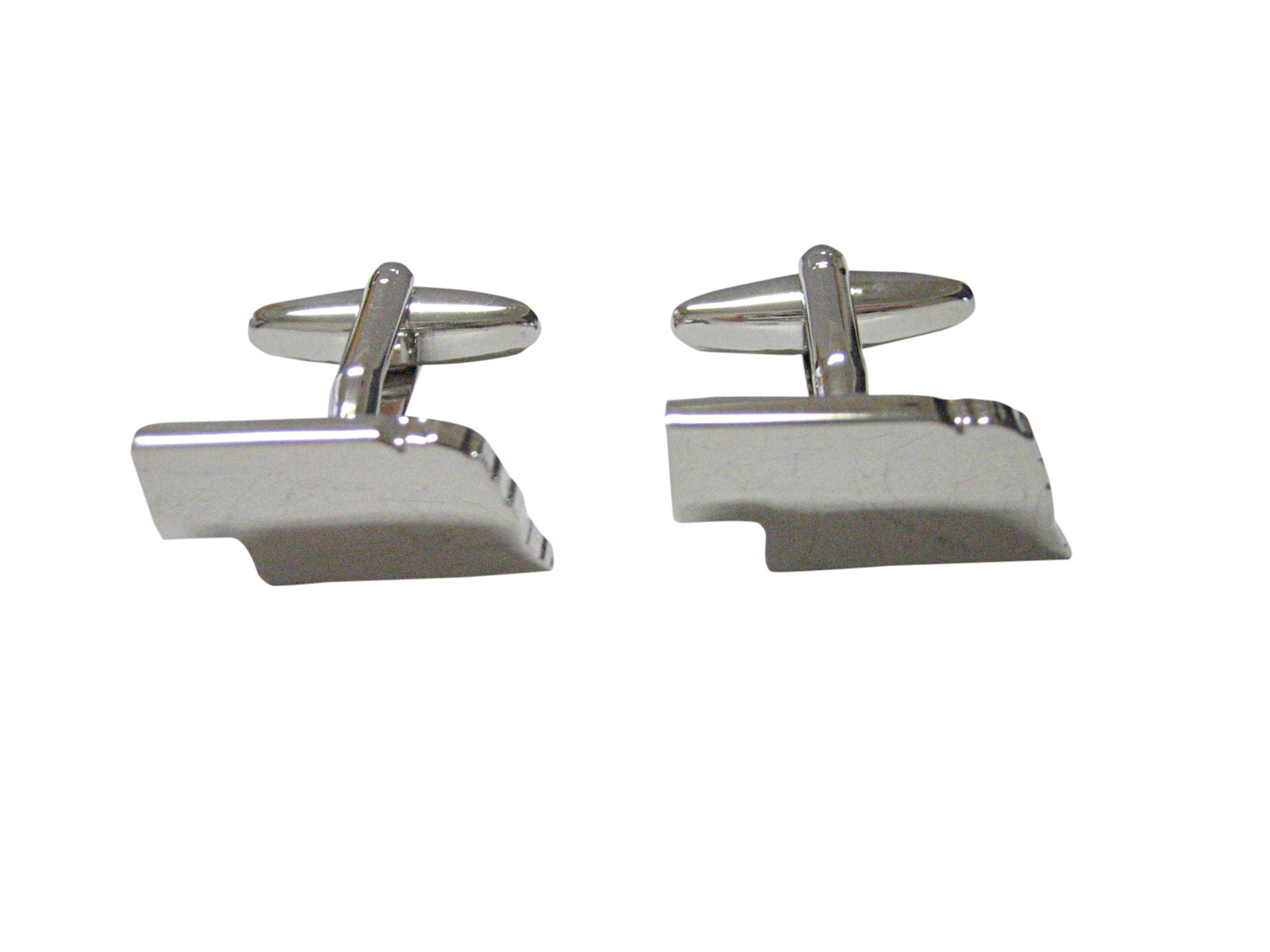 The cufflink is roughly 7/8 inch long by 3/8 inch high