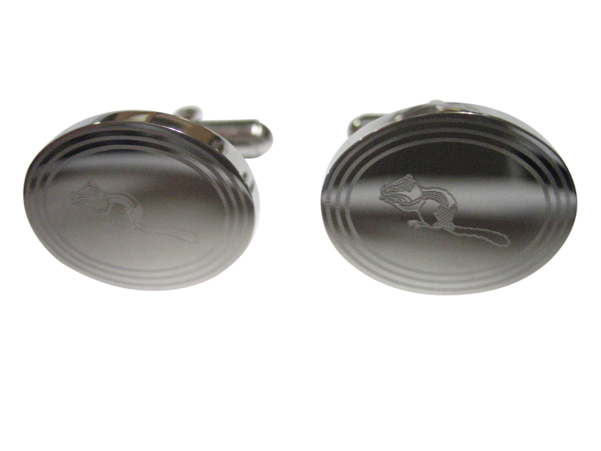 Silver Toned Etched Oval Chipmunk Cufflinks