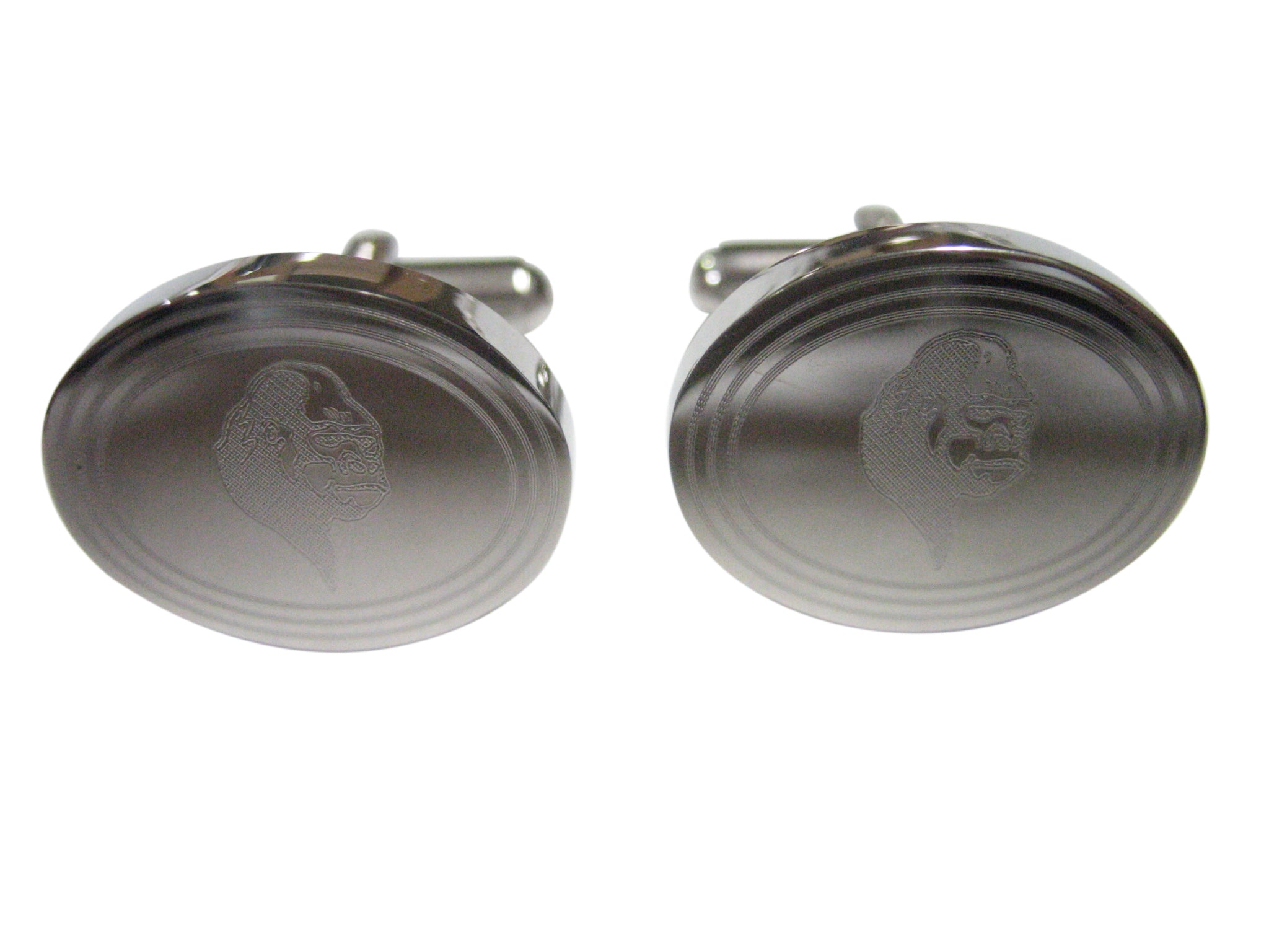 Silver Toned Etched Oval Gorilla Head Cufflinks