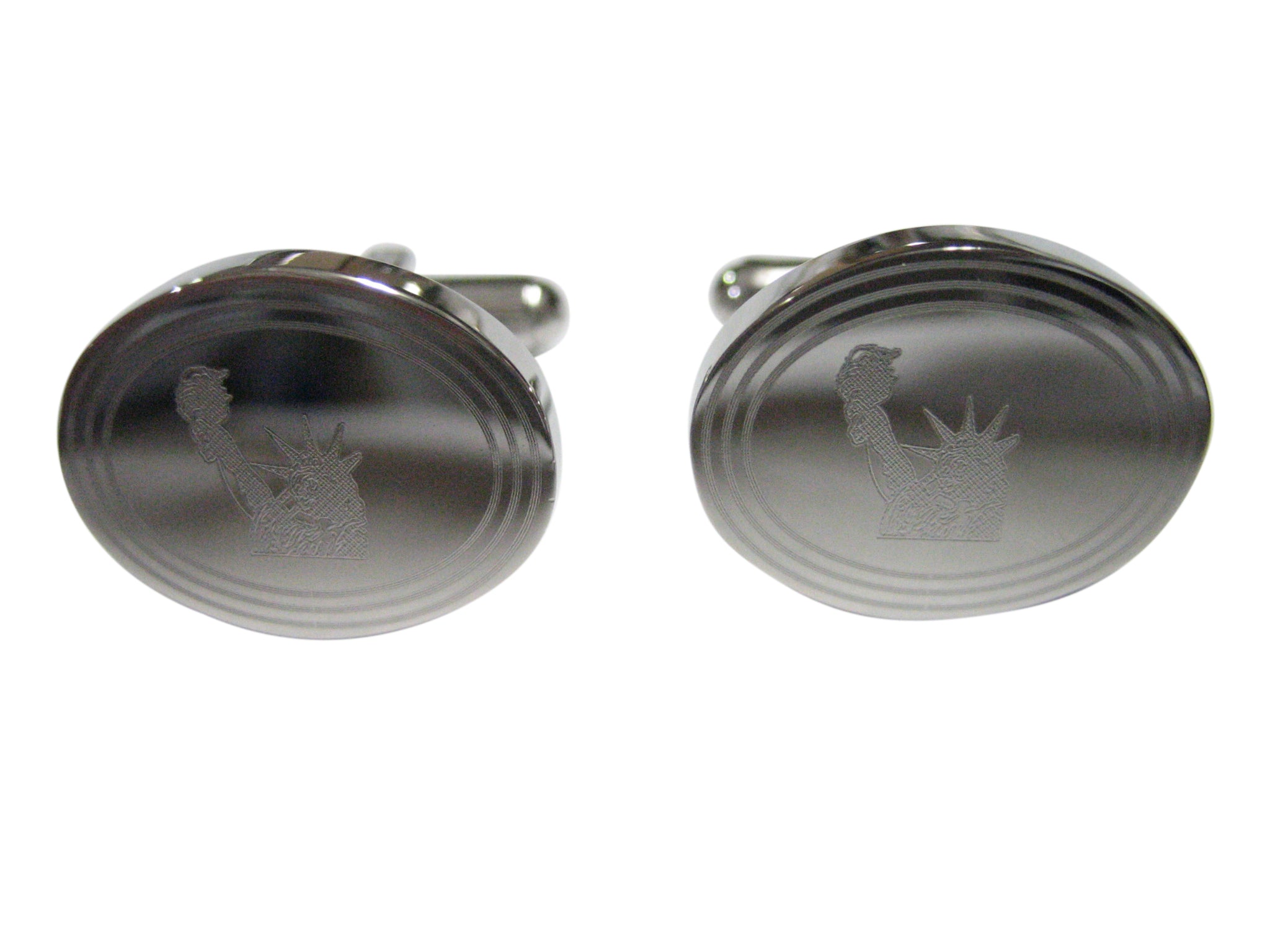 Silver Toned Etched Oval Iconic Statue of Liberty Cufflinks