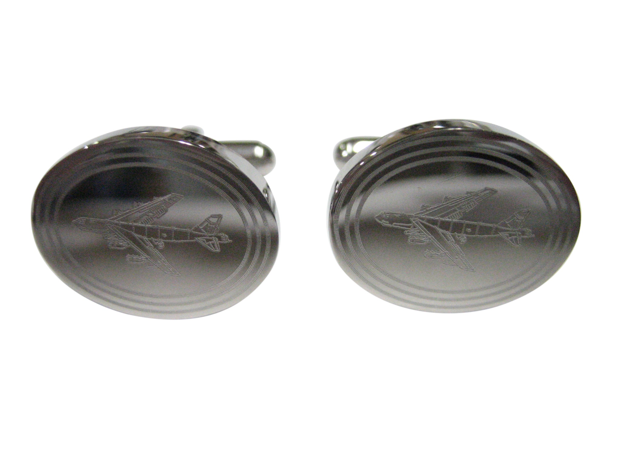Silver Toned Etched Oval Jumbo Jet Plane Cufflinks