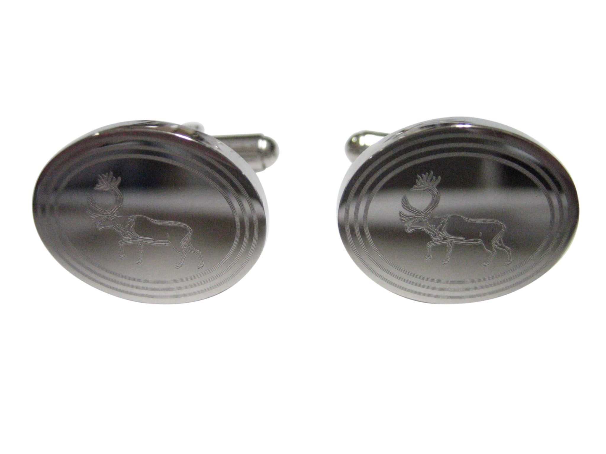 Silver Toned Etched Oval Left Facing Moose Cufflinks