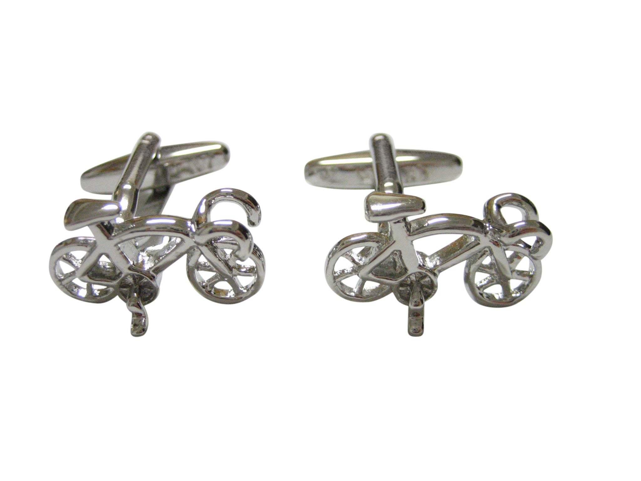 Silver Toned Racing Bicycle Cufflinks