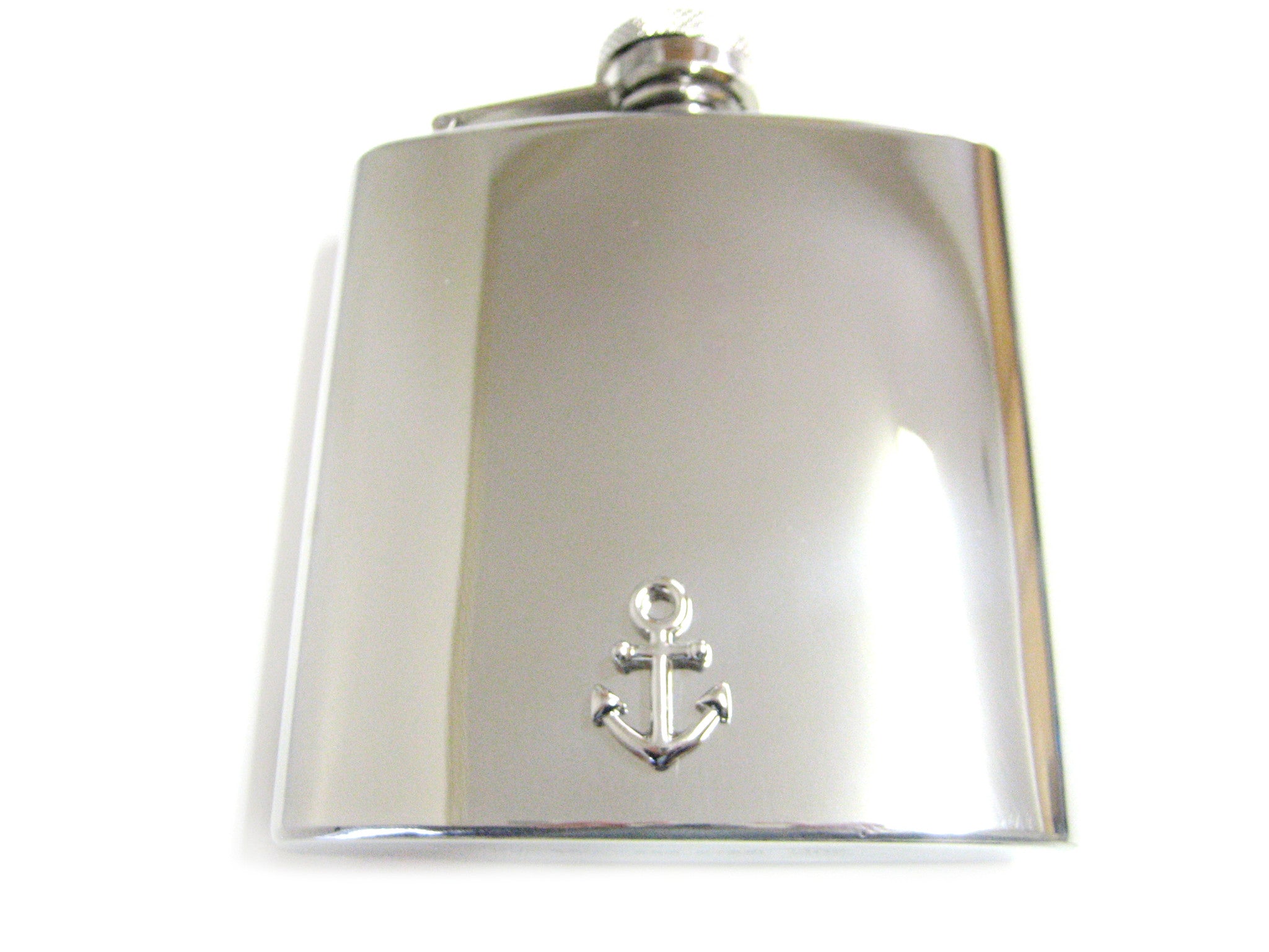 6 Oz. Stainless Steel Flask with Nautical Ship Anchor Pendant