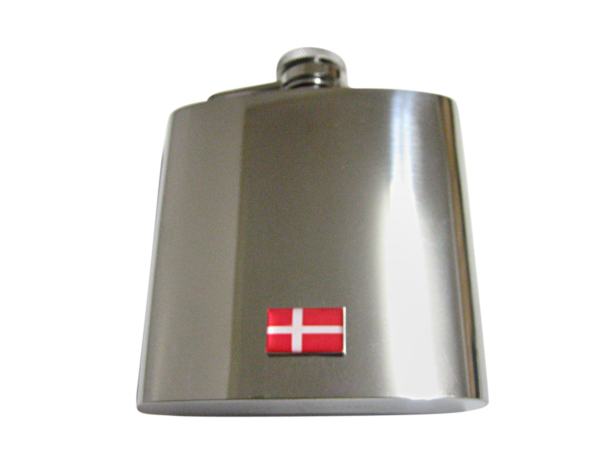 Denmark Flag Pendant 6 Oz. Stainless Steel Flask