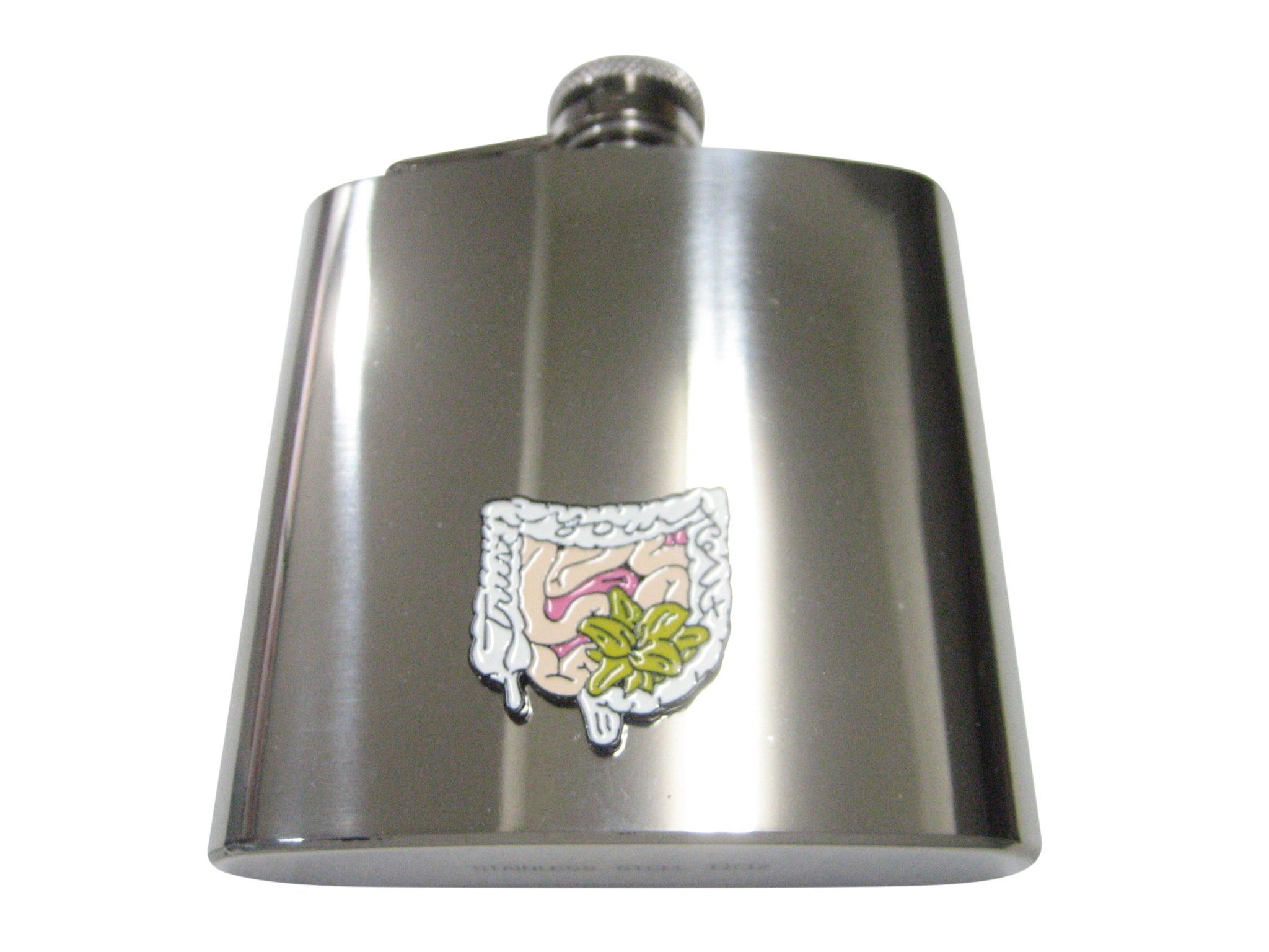 The Stainless Steel Flask holds 6 oz. of liquid.