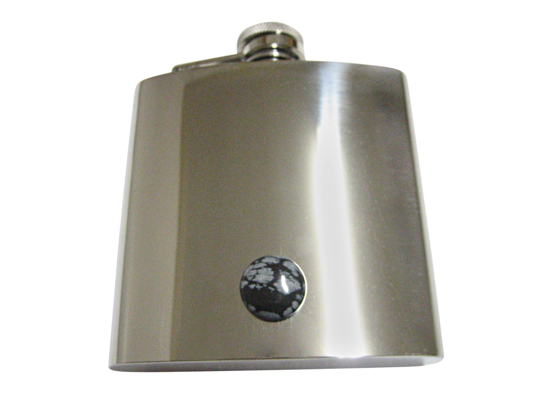 Round Snowflake Obsidian 6 Oz. Stainless Steel Flask